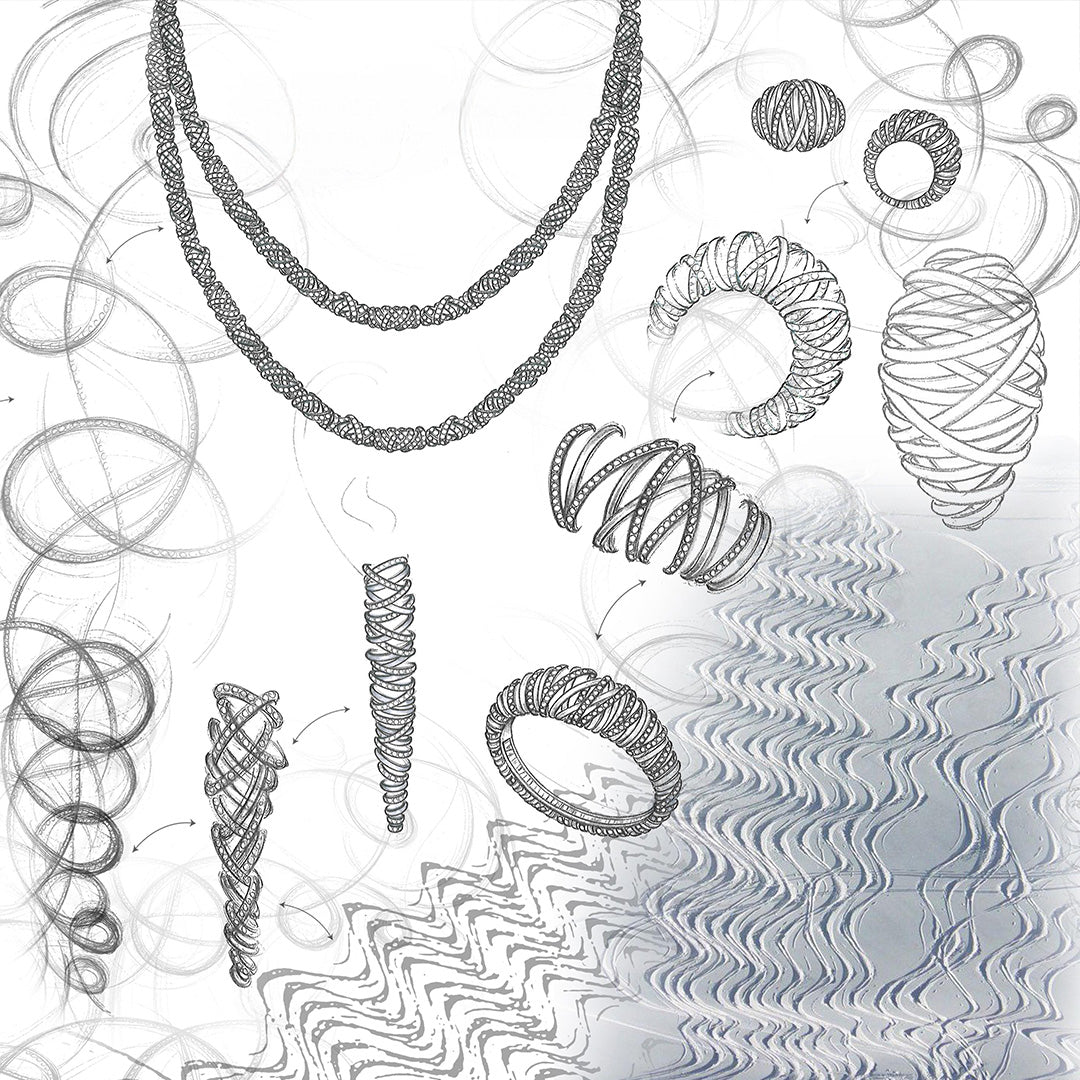 The creative process of each jewelry collection starts months in advance and is led by Kika PRETTE. She and her creative team imagine a universe around a particular theme; always relevant to APM brand identity. The thought process is then materialized onto a mood board which is constantly in progress.