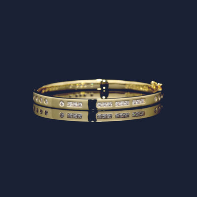 This bracelet is made with APM Yellow Alloy 18k gold plated layer of 3 microns and microset with white cubic zirconia to form the word BONHEUR in Morse Code secret language. The meaning is also engraved inside.