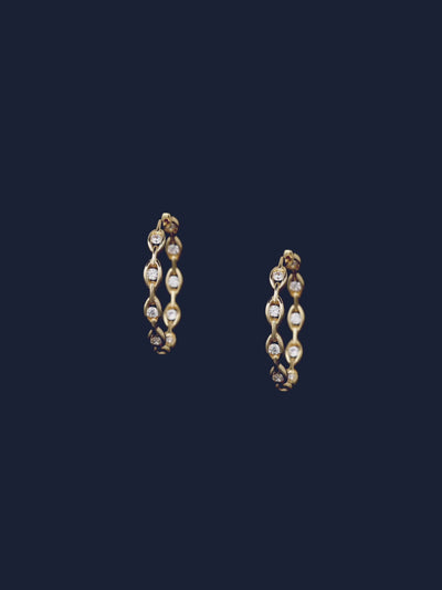 These earrings made with APM Alloy and 18k yellow gold plated are paved with white cubic zirconia. The setting technique gives the stones a refined floating effect.