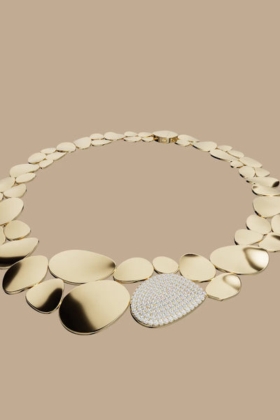 - Material: APM Alloy made of 95% recycled material and 18k yellow gold plated, anti-tarnishing and hypoallergenic, over 50 curved pieces assembled together