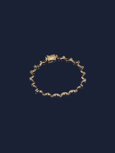 This bracelet made with APM Alloy and 18k yellow gold plated is microset with white cubic zirconia.