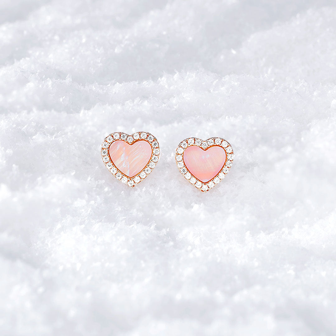 ピンクマザーオブパール ハート&ドット 調節可能ブレスレット