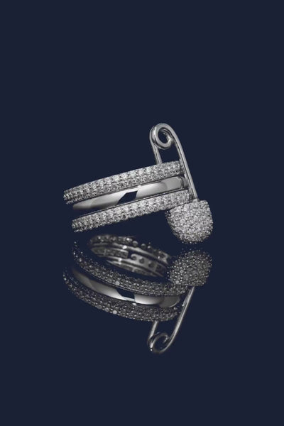 Love, Smile, Bonheur Triple Hoop Safety Pin Ring