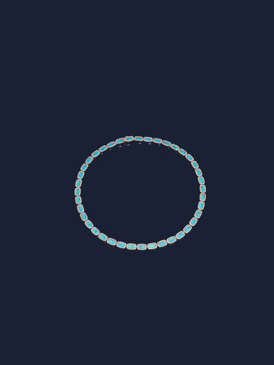 APM Yellow Alloyと18Kゴールドプレートで仕上げたネックレス。ホワイト キュービックジルコニアのマイクロセッティングが施され、ターコイズカラーのストーンがあしらわれています。