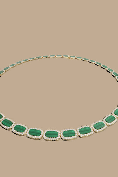 鮮やかなマラカイトストーンをあしらったチョーカー。鮮やかなカラー、みずみずしいエレガンスで、あらゆるスタイルにマッチングできます。