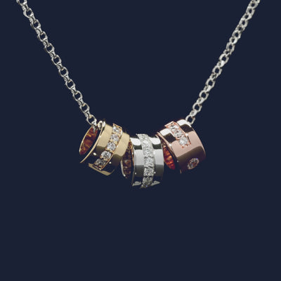 APM Rose Alloyと3ミクロンの18Kゴールドプレートレイヤーで仕上げたネックレス。ホワイトジルコニアのマイクロセッティングが施されています。