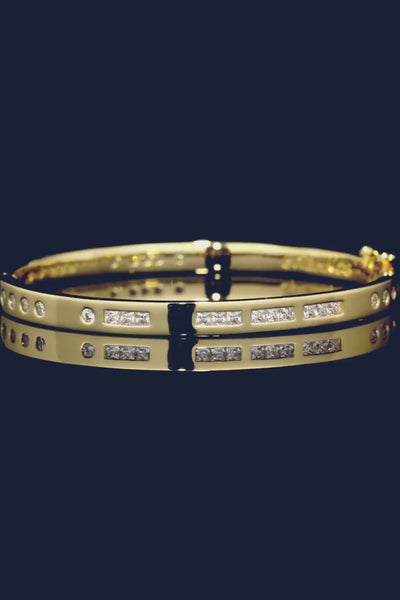 APM Yellow Alloyと3ミクロンの18Kゴールドプレートレイヤーで仕上げたブレスレットです。ホワイトジルコニアのマイクロセッティングが施され、BONHEUR との意味が含まれている秘密言語のモールスコードがあり、内側にその意味が刻印されています。