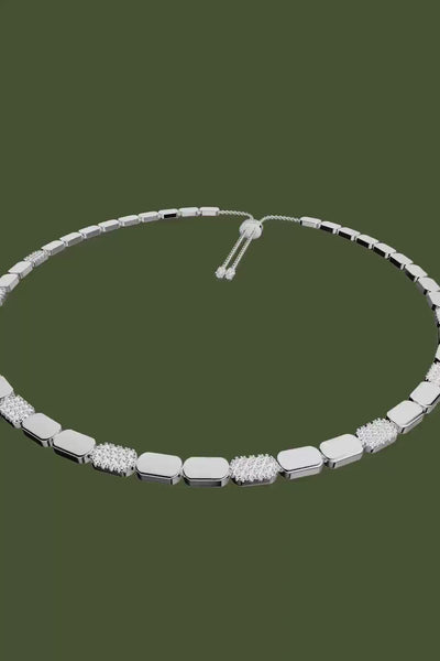 ネックレスのデザインをエレガントに彩るまばゆいストーン。魅惑のコントラストを描き出します。