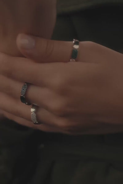 ジュエリーには、主にジルコニア、淡水パールといった約300のストーンが使用されます。APMでは、リサイクル素材から作られた純度の高いスターリングシルバー925を使用しています。