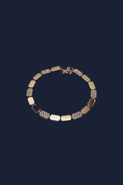 APM Yellow Alloyと18Kゴールドプレートで仕上げたブレスレット。ホワイト キュービックジルコニアのマイクロセッティングが施されています。