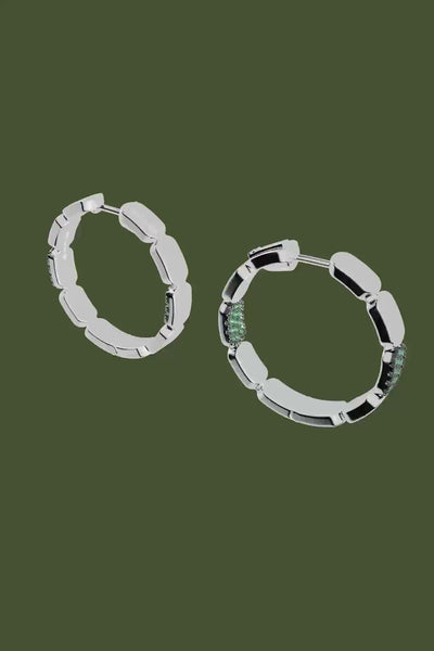輝くグリーンのストーンがピアスのデザインを優雅に引き立て、魅惑のコントラストを奏でます。