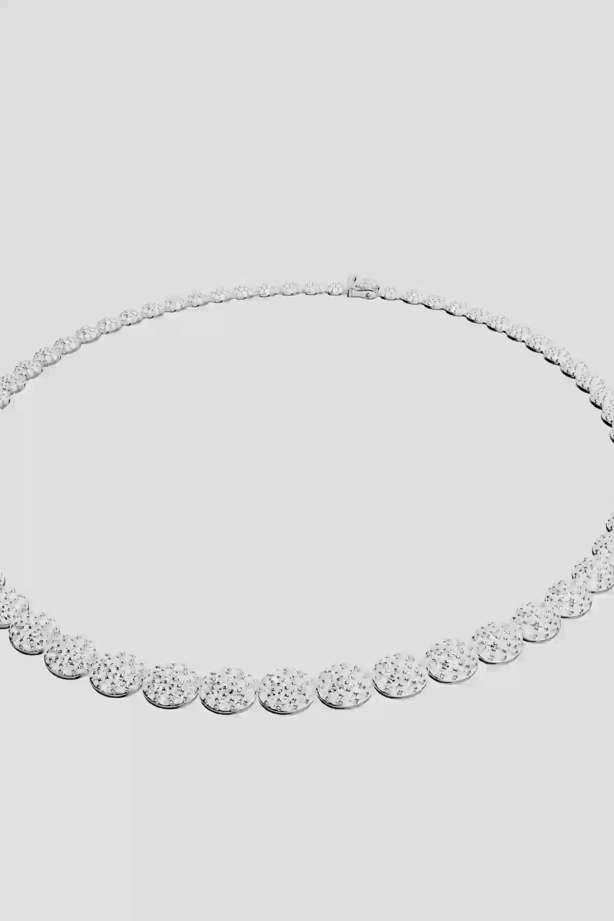 何百ものストーンを丁寧にあしらったこのネックレスは、まばゆい輝きを放ち、視線を惹きつける魅力を演出します。 デイタイムからナイトシーンまで、エフォートレスに溶け込みます。