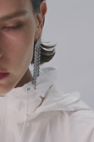 何百ものストーンを丁寧にあしらったこのピアスは、まばゆい輝きを放ち、視線を惹きつける魅力を演出します。 デイタイムからナイトシーンまで、エフォートレスに溶け込みます。