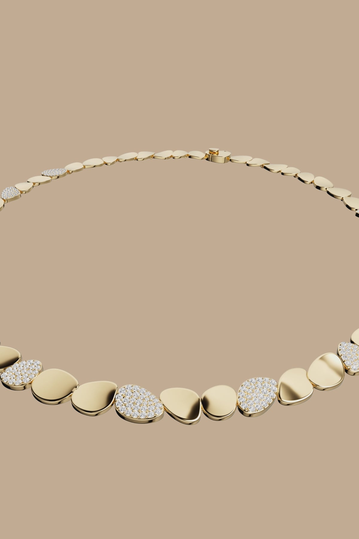 地中海の海岸線をイメージし、その美しい光景のエッセンスを昇華させたチョーカー。やさしいオーガニックな感触が息づきます。
