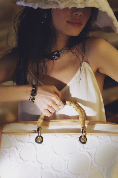 保証範囲は、留め具、ストーンやパールの紛失、黄色、ピンク、灰色、または黒い製品の色落ちなどです。保証は、ジュエリーの自然な経年変化、不適切な使用、ジュエリーの全体または一部の部品の紛失、バッグやアクセサリーには適用されません。