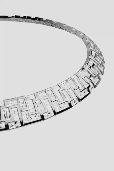 スターリングシルバーが輝くストーンの小径と交わり、光と影が織りなす小さな割れた氷 を描き出します。