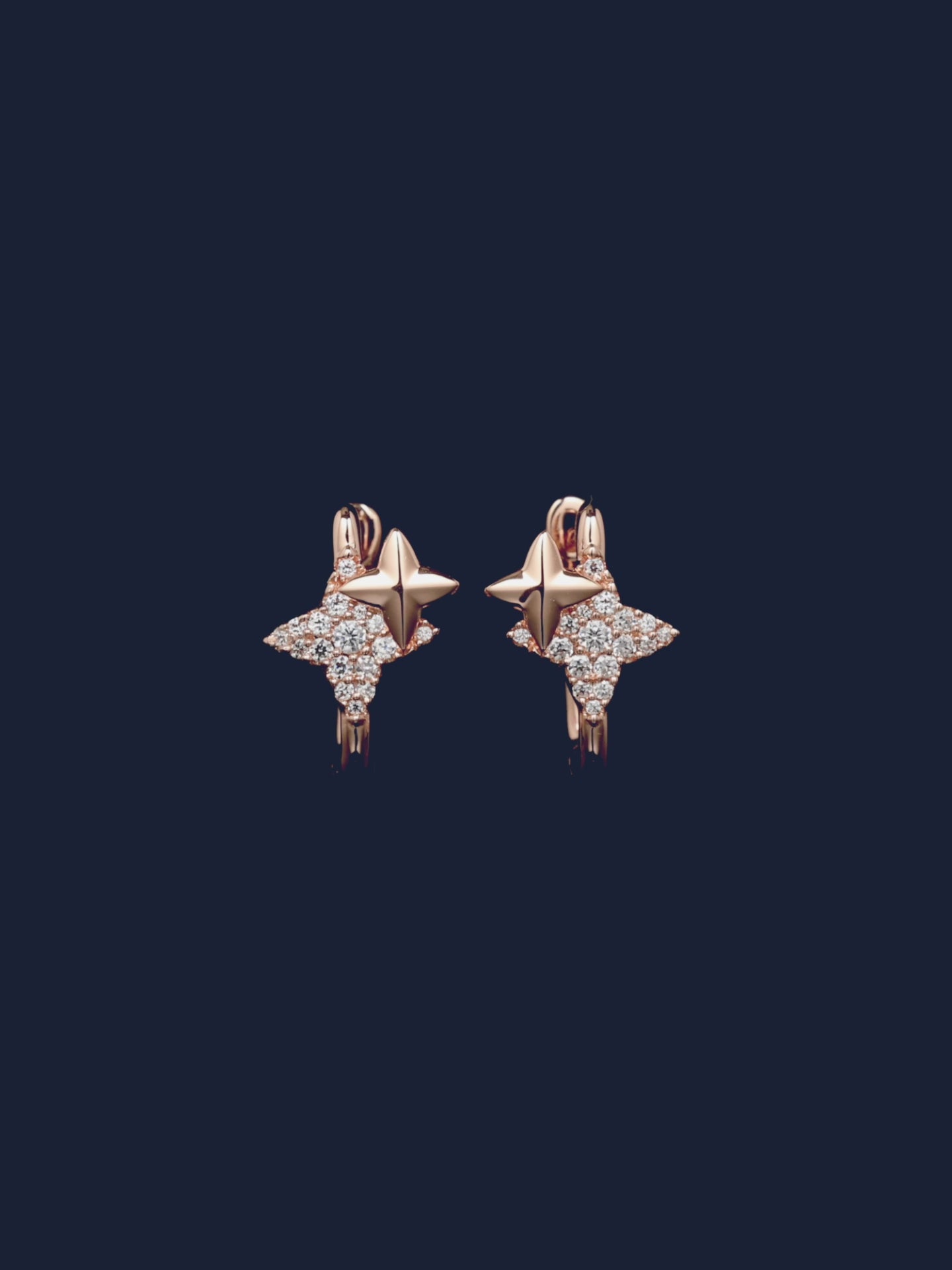 APM Rose Alloyと18Kゴールドプレートで仕上げたピアス。ホワイト キュービックジルコニアのマイクロセッティングが施されています。