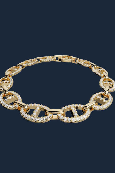 APM Yellow Alloyと18Kゴールドプレートで仕上げたブレスレット。ホワイト キュービックジルコニアのマイクロセッティングが施されています。