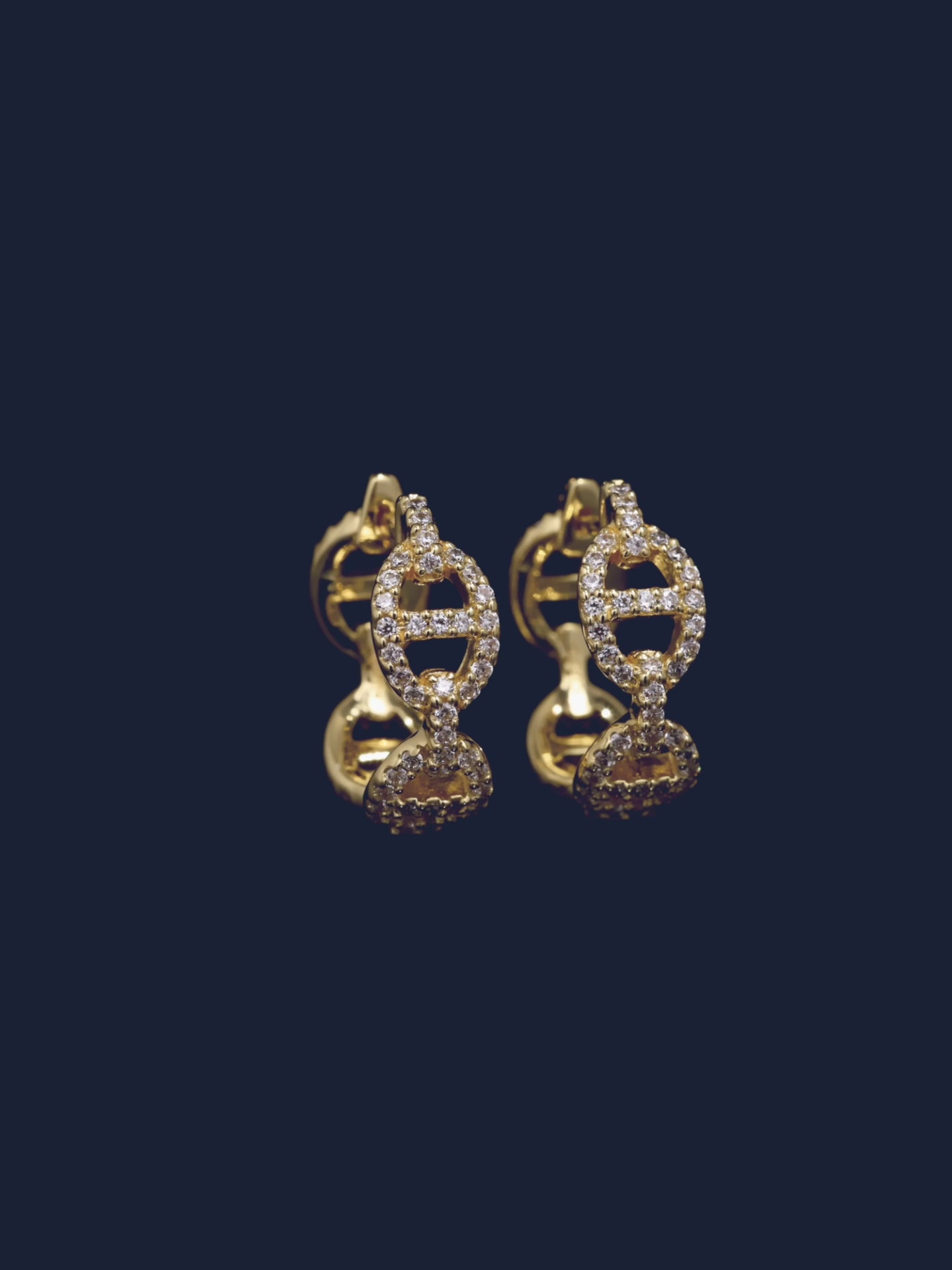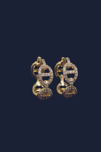 APM Yellow Alloyと18Kゴールドプレートで仕上げたピアス。ホワイト キュービックジルコニアのマイクロセッティングが施されています。