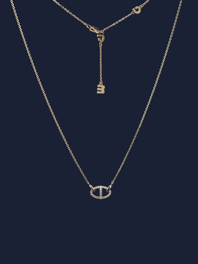 APM Yellow Alloyと18Kゴールドプレートで仕上げたネックレス。ホワイト キュービックジルコニアのマイクロセッティングが施されています。
