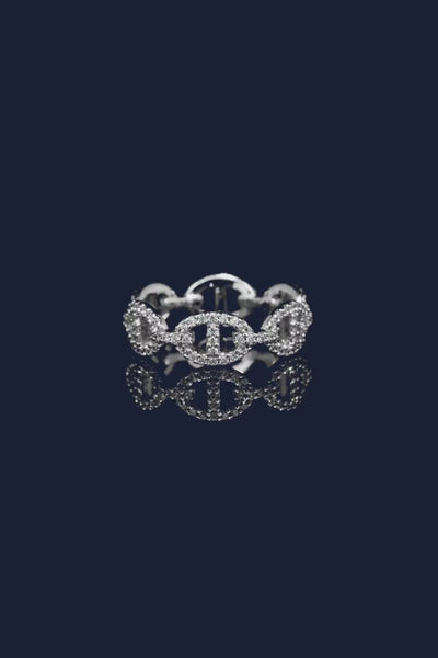 手作業で仕上げたスターリングシルバー製のリング。ホワイトジルコニアのマイクロパヴェが施されています。