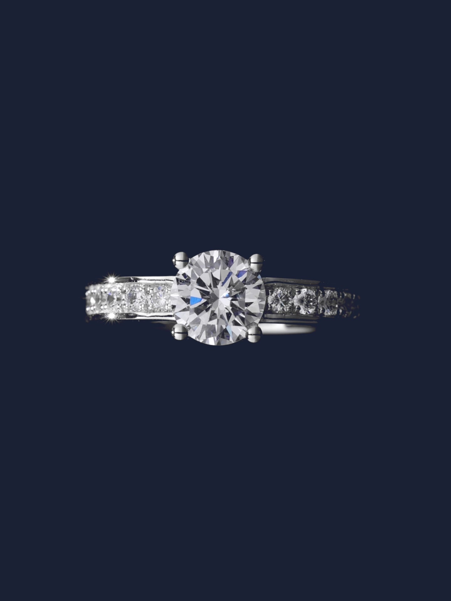 手作業で仕上げたスターリングシルバー製のリング。ホワイト キュービックジルコニアのマイクロセッティングが施されています。