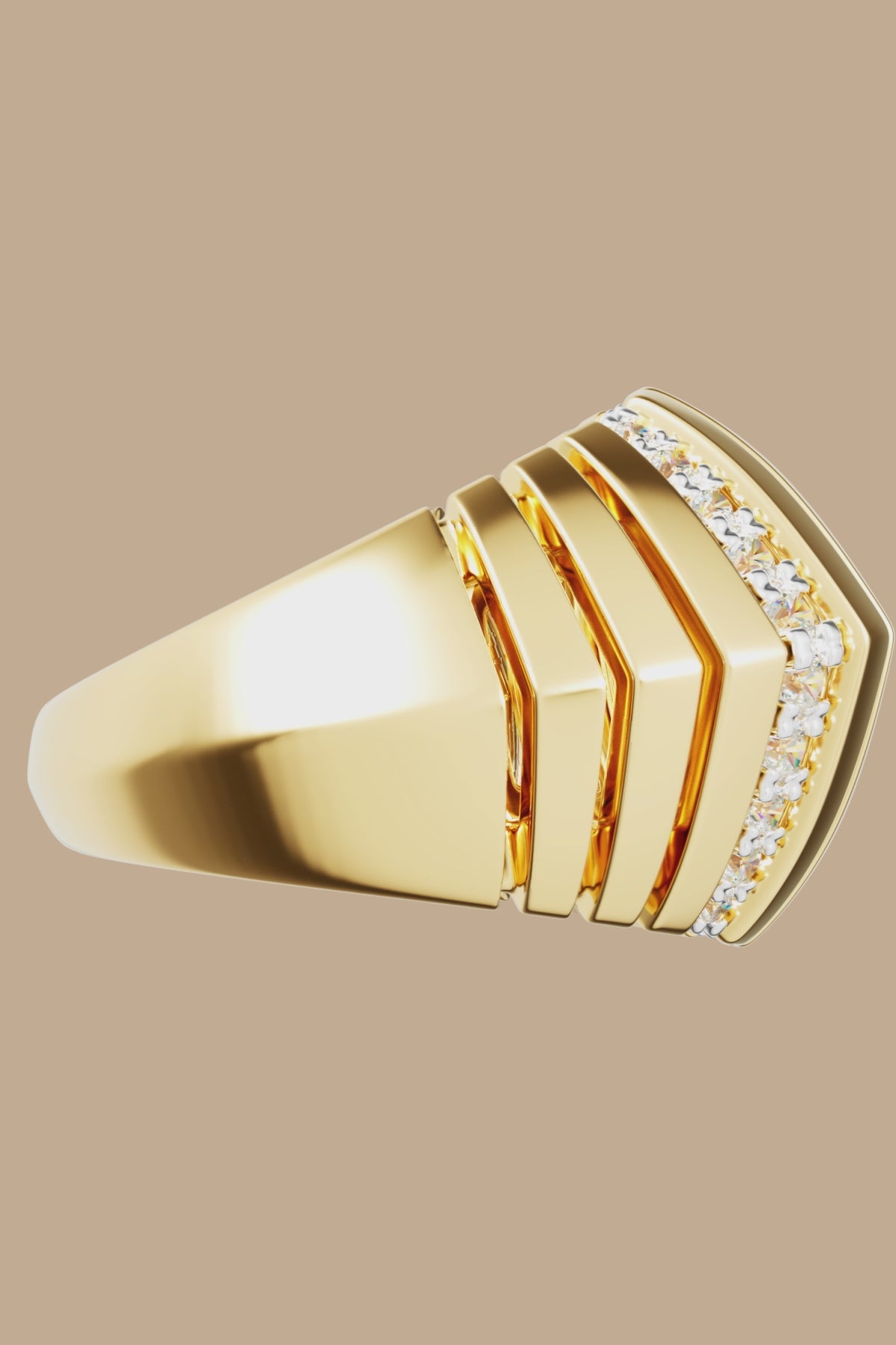 太陽をイメージし、あたたかなゴールドトーンの光を象徴したリング。パヴェディテールが美しくきらめき、あらゆるルックを引き立てます。 南フランスの絵のように美しい遊歩道に立ち並ぶヤシの葉にインスピレーションを得てデザインされています。