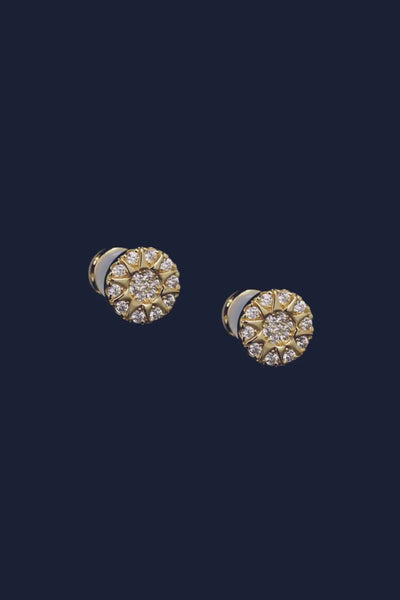 APM Yellow Alloyと18Kゴールドプレートで仕上げたピアス。ホワイト キュービックジルコニアのマイクロセッティングが施されています。