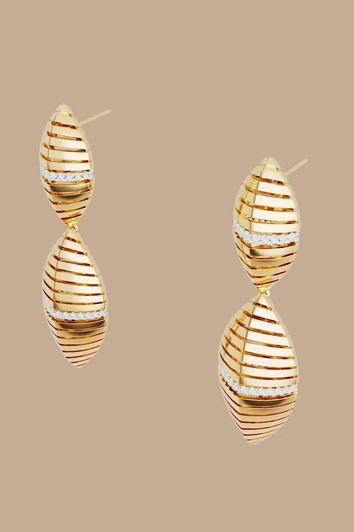 太陽をイメージし、あたたかなゴールドトーンの光を象徴したピアス。パヴェディテールが美しくきらめき、あらゆるルックを引き立てます。 南フランスの絵のように美しい遊歩道に立ち並ぶヤシの葉にインスピレーションを得てデザインされています。