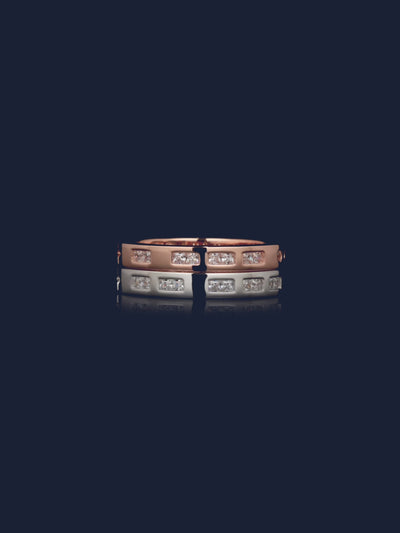 手作業で仕上げたスターリングシルバー製のリング。ホワイト キュービックジルコニアがあしらわれています。TOI ET MOIを表すモールスコードがホワイト キュービックジルコニアのマイクロセッティングで施されています。リングの内側にその意味(TOI ET MOI)がエングレービングされています。