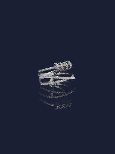 5つのパヴェ・セッティングのスライディングフープで装飾されたシルバーリングで、洗練されたルックに。このリングはAPMのベストセラー商品の1つです。