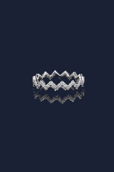 ホワイトストーンの装飾が施されたグラフィックなリング。他のAPMジュエリーとのミックス&マッチで、よりファッショナブルなルックを完成させます。