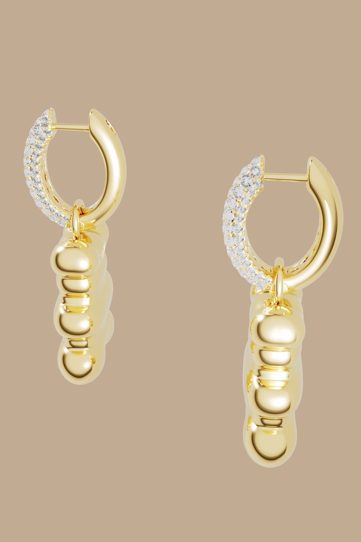 - スタイリングのヒント:Yummyペンダントをピアスから取り外し、クラシックなフープとしてまとえます。 Yummyは、別のジュエリーにリンクさせてまとえます。