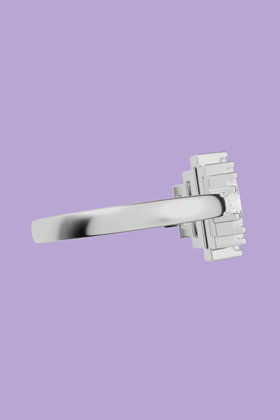 This ring is meticulously crafted to strike the perfect harmony between bold structure and refined elegance.The design and stone setting ensure a unique brilliance. Inspired by Art Deco aesthetic, each piece embodies timeless sophistication.