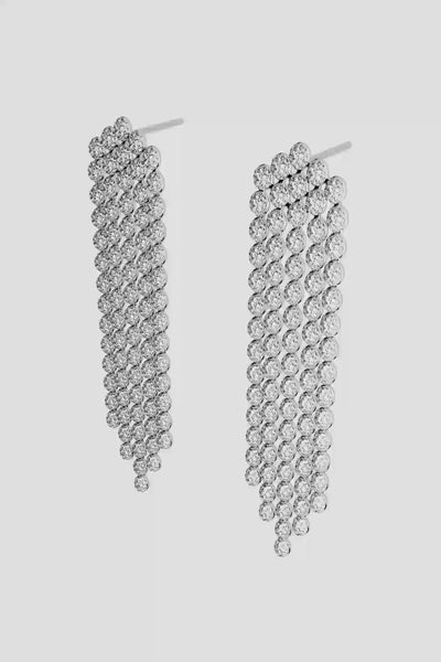 These earrings, meticulously adorned with hundreds of stones, capture the delicate shape of snowflakes. It transitions effortlessly from day to night.