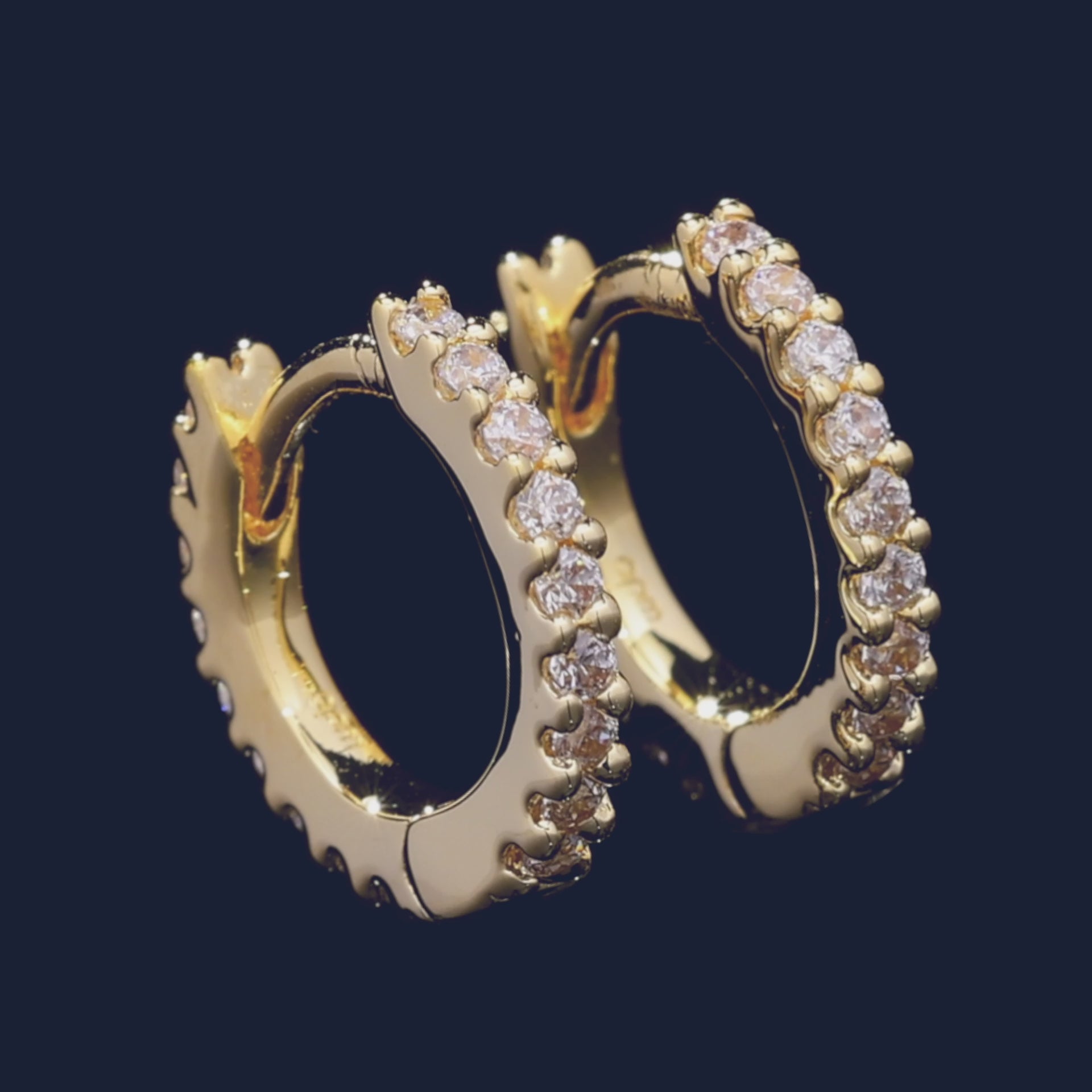 These earrings are made with APM Yellow Alloy and 18k gold plated layer of 3 microns, they are microset with white cubic zirconia.