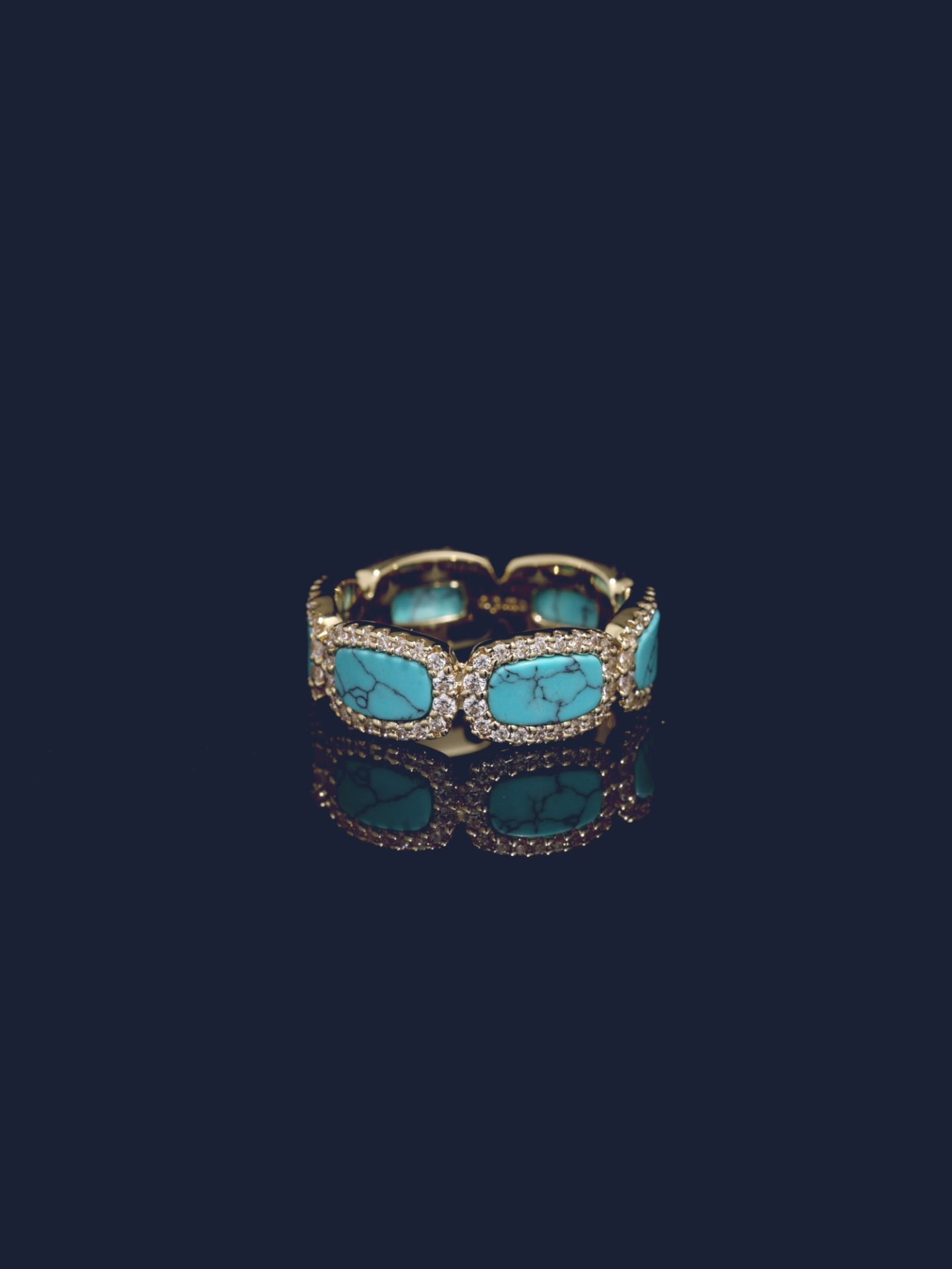 - Material: APM Yellow Alloy made of 95% recycled material and 18k gold plated, white cubic zirconia, created turquoise, anti-tarnishing and anti-allergic