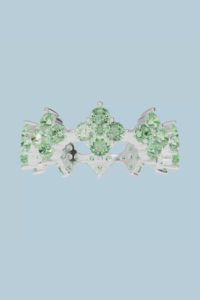 With delicate green pastel shade, this ring reflects the transparent and lively hues of spring. This handcrafted pavé design embodies elegance and modernity and allows light to shine through, creating a radiant effect.