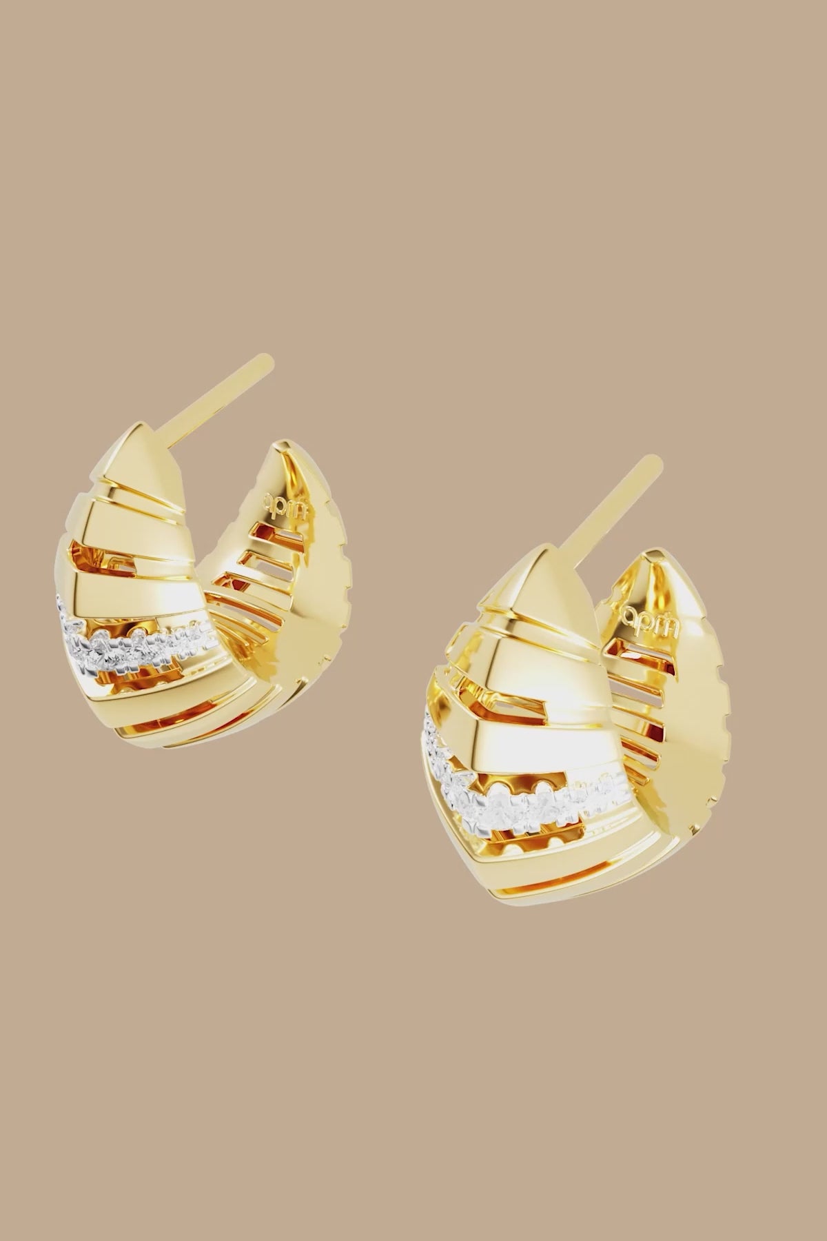 Inspired by rays of sun, symbolizing the warm and golden light, these earrings with pavé details add a touch of brightness to every look. The design also draws inspiration from palm tree leaves that line the pictureste south of France promenade.