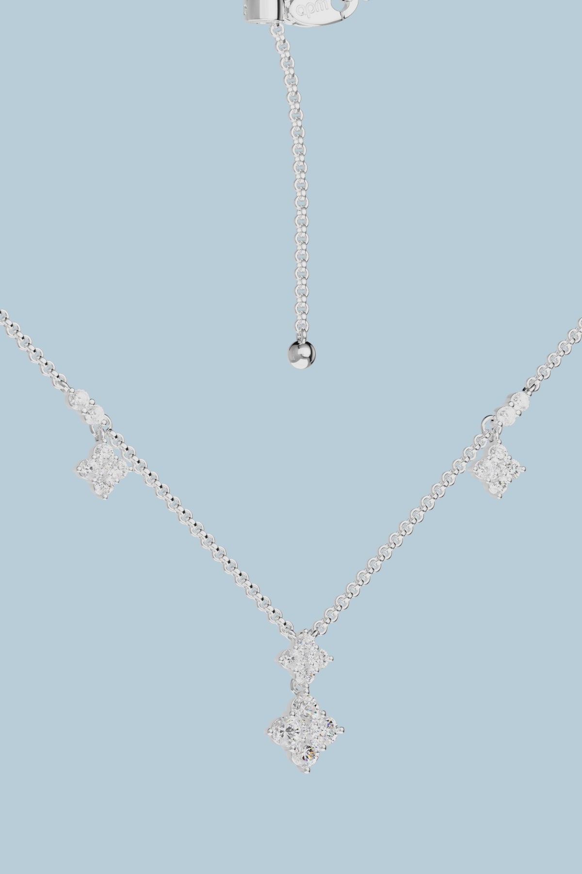 This handcrafted pavé necklace embodies elegance and modernity. The design allows light to shine through, creating a radiant effect.
