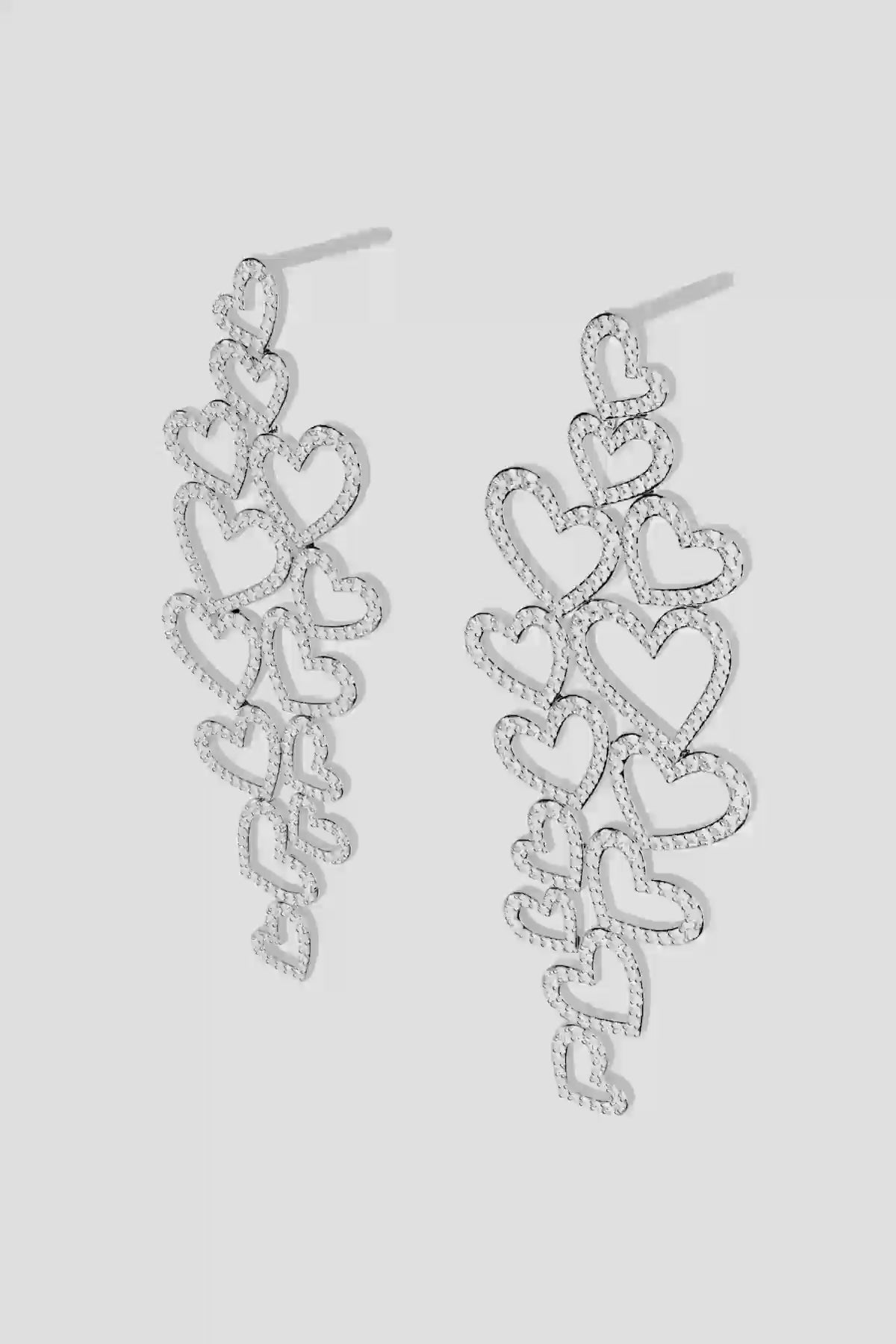 Pavé hearts in different sizes create a layered effect that sways with a romantic allure. The perfect touch of elegance and modernity.