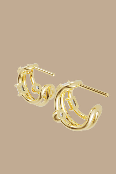 These earrings embody the golden hues of this collection with pavé details. A timeless design that is easy to wear and mix and match for any occasion. The stone setting allows light to shine through, creating a radiant effect.