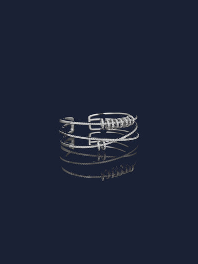 With its clean ten sliding ring designs, this open cuff embellished with white stones will add elegance and sophistication to your daily wear.